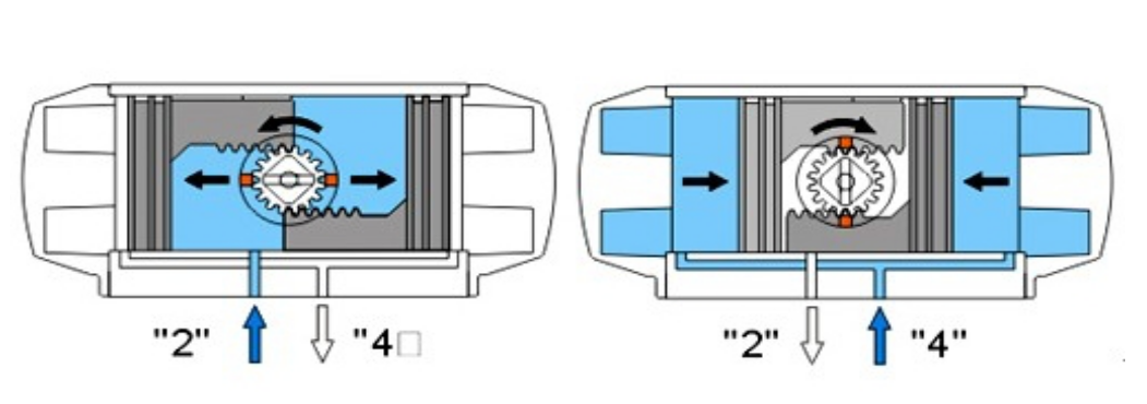 2、緊湊的雙活塞齒輪、齒條式結(jié)構(gòu),嚙合精確,傳動平穩(wěn),安裝位置對稱,輸出扭矩恒定。