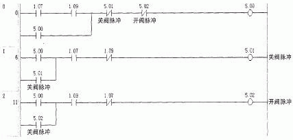 當(dāng)閥門先離開A傳感器,后離開B傳感器時(shí),表示閥門在關(guān)閥。當(dāng)閥門先離開B傳感器,后離開A傳感器時(shí),表示閥門在開閥。傳感器接收到的是一個脈沖信號,通過位置傳感器的采集信號來記下閥門的開關(guān)狀態(tài)。記錄開閥和關(guān)閥脈沖的本分梯形圖如圖3所示。