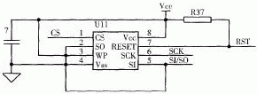 考慮到在系統(tǒng)掉電或重新啟動時(shí),需要保持先前在儀表中設(shè)置的一些閥門參數(shù),而單片機(jī)中的數(shù)據(jù)存儲器不具備掉電存儲功能,所以在片外擴(kuò)展了一個具有掉電保存功能的芯片X5045。X5045是一種集看門狗、電源監(jiān)控和串行EEPROM3種功能于一身的可編程電路,這種組合設(shè)計(jì)可以減少電路對電路板空間的需求,X5045中的看門狗為系統(tǒng)提供了保護(hù),當(dāng)系統(tǒng)發(fā)送故障而超過設(shè)定時(shí)間時(shí),電路中的看門狗將通過RESET信號向CPU作反應(yīng)。X5045提供了三個時(shí)間值供用戶選擇使用。它所具有的電壓監(jiān)控功能還可以保護(hù)系統(tǒng)免受低電壓的影響,當(dāng)電源電壓降到允許范圍以下時(shí),系統(tǒng)將復(fù)位,直到電源電壓返回到穩(wěn)定值為止。X5045的存儲器與CPU可通過串行通信方式接口。共4069位,可以按512×8個字節(jié)來放置數(shù)據(jù)。