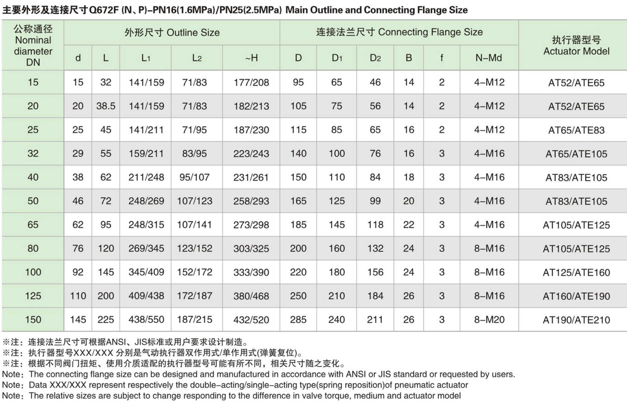 GT氣動執行器型號對照表